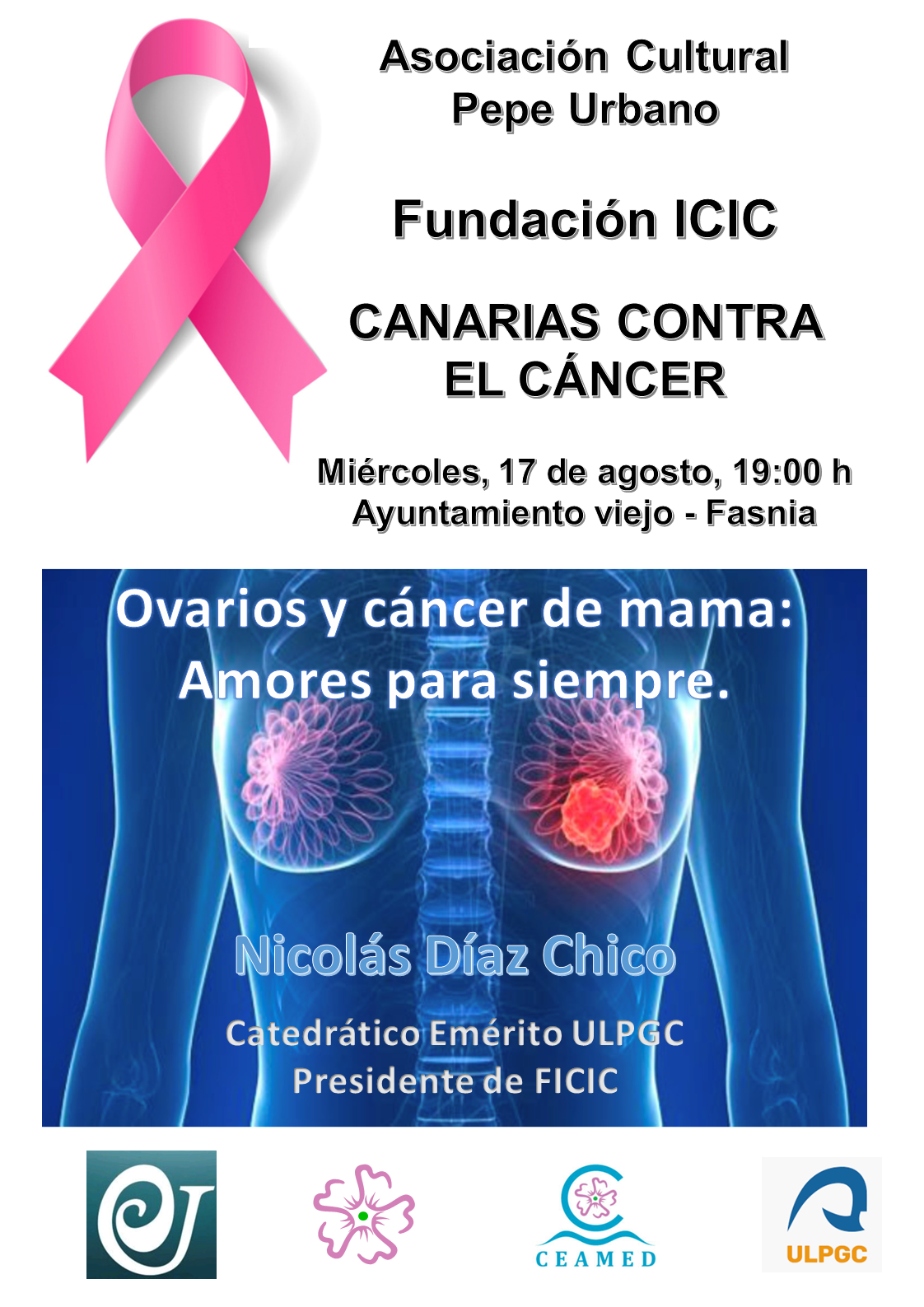 (09/08/2022) Ovarios y cáncer de mama: Amores para siempre. Fasnia 17 de Agosto 2022 Ovarios y cáncer de mama