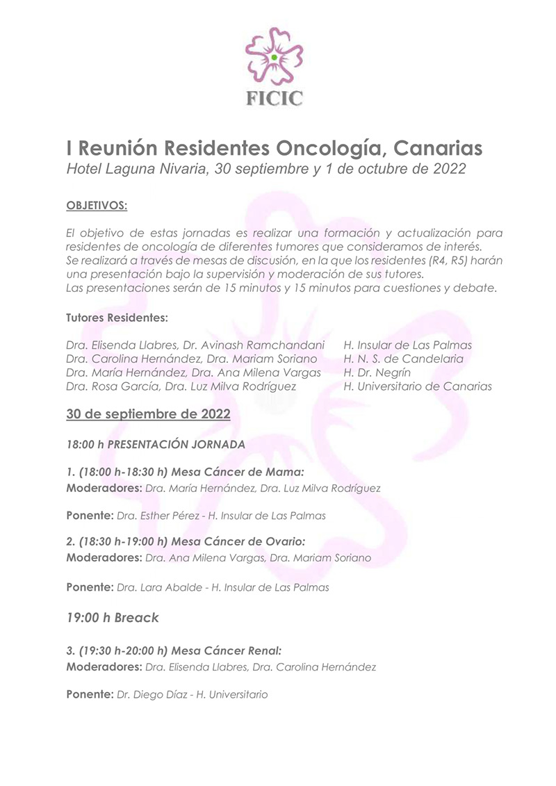 (30/09/2022) I Reunión Residentes Oncología, Canarias Reunión Residentes Oncología