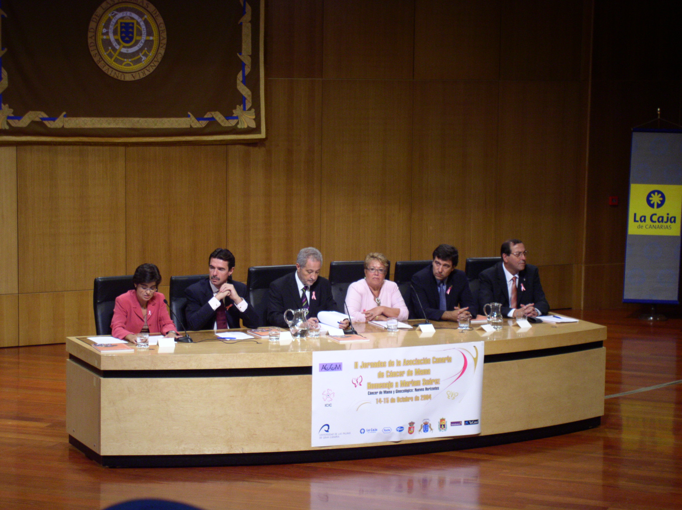 4. II Jornadas de Cáncer de Mama: la ACCM, la ULPGC y el ICIC juntan fuerzasLos pasados 14 y 15 de octubre se celebraron las II Jornadas de la Asociación Canaria de Cáncer de Mama, con el título "Cáncer de mama y ginecológico: nuevos horizontes". Estuvieron dedicadas a la memoria de Mariam Suárez, Presidenta de Honor de la ACCM, y fueron por organizadas por la ACCM, con la colaboración del ICIC y de la Universidad de Las Palmas de Gran Canaria. En el acto de inauguración estuvieron presentes el Presidente del Gobierno de Canarias, Adán Martín; el Presidente del Cabildo de Gran Canaria, Manuel Soria; la Subdelegada del Gobierno de Canarias, Carolina Darias; y por parte de los organizadores, el Vicerrector de la ULPGC, Antonio Fernández; la Presidenta de la Asociación Canaria de Cáncer de Mama, Marisa Herrera; y el Director del ICIC, Nicolás Díaz Chico. Mesa presidencial en la inauguración de las II Jornadas de la ACCM sobre Cáncer de Mama y Ginecológico: Nuevos Horizontes. Carolina Darias (Subdelegada del Gobierno), Manuel Soria (Presidente del Cabildo de Gran Canaria), Adán Martín (Presidente del Gobierno de Canarias), Marisa Herrera (Presidente de ACCM), Antonio Fernández (Vicerrector de la ULPGC); Nicolás Díaz Chico (Director del ICIC) La impresionante mesa inaugural revela la trascendencia social que están alcanzando las cuestiones relativas al cáncer en Canarias, en general, y la fuerza con que se está implantando la ACCM. Su tendencia a confiar en organizaciones científicas, en particular el ICIC y la ULPGC para llevar a cabo sus acciones son dignas de elogio, pues tratan de llevar el conocimiento más actual sobre el cáncer a sus asociados y simpatizantes. El programa científico de las II Jornadas contó con ponentes cuyo trabajo ha sido ampliamente elogiado por los más de 200 inscritos. Los ponentes abarcaron los temas capitales relativos al cáncer de mama, desde el diagnóstico radiológico precoz (Carmen Rosa Hernández) y el diagnóstico patológico (Agustín Rey); la cirugía de la mama (Juan Manuel San Román, fundador de la Fundación de Estudios Mastológicos, FEMA), incluyendo la tecnología del ganglio centinela (Mª Jesús Hernández) y la cirugía reparadora (Javier Fernández Palacios); los tratamientos radioterápico (Marta Lloret) y quimioterápico (José Aguiar). Contaron con ponencias sobre el tratamiento psicológico (Nuria Toledo) y los aspectos socioloborales (Rocío Ramírez) del cáncer de mama. Finalmente, hubo sesiones dedicadas a la descripción y fundamentos hormonales del cáncer ginecológico (Amina Lubrano), al origen y prevención del cáncer ginecológico (Servando Seara), y a la organización de equipos multidisciplinares en el tratamiento del Cáncer (Domínguez Cunchillos, presidente de la Sociedad de Senología y Patología Mamaria). Imagen de los más de 200 participantes en las jornadas, celebradas en el Paraninfo de la ULPGC. Dos mensajes calaron especialmente entre los asistentes. Con respecto al cáncer de mama, la necesidad de todas las mujeres Canarias tengan acceso al diagnóstico precoz, mediante mamografía, entre los 45 y los 65 años. Con respecto al cáncer ginecológico, la necesidad de ir al ginecólogo una vez al año para revisar el cuello uterino, las mamas y los ovarios. La organización de los actos fue un éxito sobre todo por la dedicación y entusiasmo del personal y las voluntarias de la ACCM, que realizaron una gran labor previa a las jornadas en la preparación del abundante material distribuido, y atendieron sin desmayo la gran afluencia de inscritos a última hora. Las excelentes condiciones del Paraninfo de la ULPGC y la dedicación de los técnicos del ICIC y la ULPGC, que apoyaron en imagen y sonido a los ponentes, también debe ser desatacada. En la clausura se leyó una carta del Ministro de Justicia, Juan Fernando López Aguilar, que no pudo acudir físicamente al acto. |