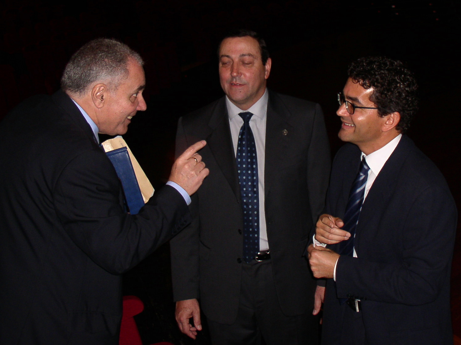 7. Sergio Moreno, asesor del ICIC, recibe tres premios en 2004Nuestro asesor Sergio Moreno, Profesor del Investigación del Centro de Investigación del Cáncer de Salamanca, perteneciente al Consejo Superior de Investigaciones Científicas ha recibido este año tres premios. El primero de ellos, ha sido nombrarle EMBO Member (European Molecular Biology Organization), que le otorga un reconocimiento mundial a su trayectoria científica. Ángel G. Ravelo, Nicolás Díaz Chico y Sergio Moreno, durante la clausura de los cursos de Experto en Oncología Molecular en marzo de 2003. Los otros dos, el Premio Dupont de la Ciencia y el Premio Fundación Francisco Cobos de Investigación Biomédica le otorgan un gran prestigio, además de una notable bolsa. El ICIC se congratula de los logros alcanzados por este científico galdense, cuyo apoyo explicito hemos recabado en numerosas ocasiones. |