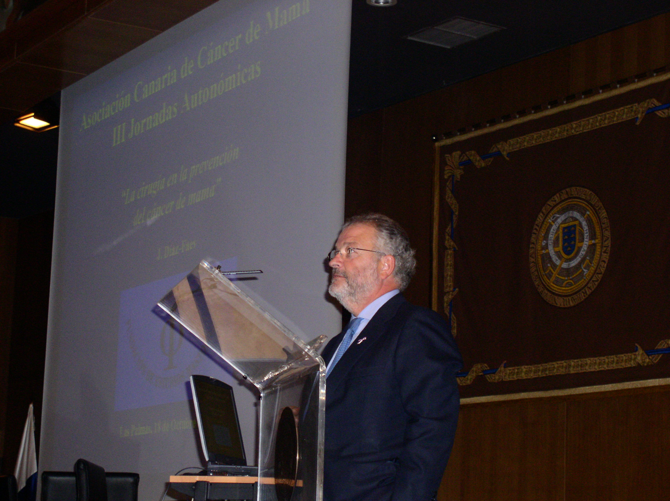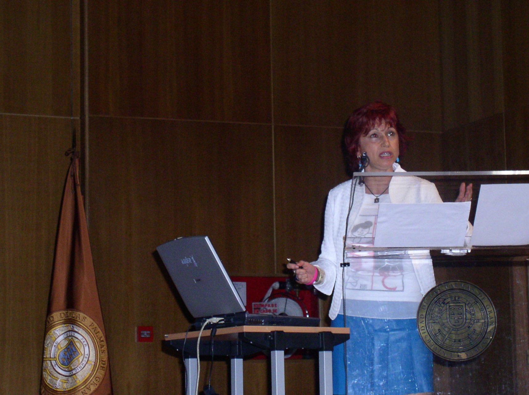 4. III Jornadas sobre Cáncer de Mama y GinecológicoComo en los años 2003 y 2004, el ICIC ha participa de nuevo este año en la organización de las III Jornadas de divulgación sobre Cáncer de Mama y Ginecológico, que tuvieron lugar los días 18 y 19 de octubre en el Paraninfo de la Universidad de Las Palmas. La Asociación Canaria de Cáncer de Mama, el Instituto Canario de Investigación del Cáncer, la Universidad de Las Palmas y la Obra Social de "la Caixa" organizaron conjuntamente las III Jornadas de cáncer de mama y ginecológico que reunieron a más de 200 personas en el paraninfo de la Universidad de las Palmas. Inauguración de las III Jornadas de Cáncer de Mama y Ginecológico Las III Jornadas fueron inauguradas por la Alcaldesa de Las Palmas, Josefa Luzardo, que estuvo acompañada por la Vicerrectora de la ULPGC Alejandra Sanjuan, la Consejera de Asuntos Sociales del Cabildo de Gran Canaria, María Salud Gil, la Subdelegada del Gobierno, Carolina Darias, el Director Regional de La Caixa, entidad que financió buena parte del evento, la Presidenta de la Asociación Canaria de Cáncer de Mama, Marisa Herrera y el Director del ICIC, Nicolás Díaz Chico. Inauguración de las III Jornadas de Cáncer de Mama y Ginecológico Las Jornadas llevaron por lema "Conocer para prevenir; prevenir para vivir", contaron con tres ponentes el primer día, que fueron José Schneider. Universidad Rey Juan Carlos, Fundación Tejerina. (Madrid), con el tema "Cáncer de mama de origen familiar", Ana Lluch, de la Universidad de Valencia., con el tema "Prevención química del cáncer de mama", y José Díaz Faes, Presidente de la Fundación de Estudios Mastológicos, con el tema "Papel de la cirugía en el cáncer de mama familiar". El primer día se cerró con un animado coloquio con todos los presentes que pudieron comprobar las diferentes apreciaciones que una oncóloga, un ginecólogo y un cirujano tienen sobre el mismo problema. El segundo día contó con la participación de Javier Benítez, Director del Departamento de Genética del Cáncer Humano del Centro Nacional de Investigaciones Oncológicas, con el tema "La unidad de diagnóstico de cáncer familiar del CNIO", que fue seguido de la presentación del los planes del ICIC para desarrollar una unidad de Cáncer Familiar, a cargo de Ana González, quien describió los principios en que se basará y la organización, Cristina Bilbao, e describió los distintos tipos de análisis genético que se van a desarrollar para cáncer de mama, cáncer colorrectal y neoplasia endocrina múltiple, y José Marrero, que abordó la importancia del Psicooncólogo en el cáncer familiar. La futura unidad contará con muchas otras personas, incluyendo a Carlos González, Inmunólogo del Hospital Dr Negrín que actualmente ofrece ese servicio y A. Saura, residente de Oncología de Hospital de La Candelaria, actualmente en formación para ocuparse de la dirección médica del servicio en Tenerife. Intervenciones de Carmen Rosa Hernández y Orlando Falcón en las III Jornadas de Cáncer de Mama y Ginecológico Tras la discusión con los asistentes sobre criterios de selección en Cáncer de Mama Familiar, tuvieron lugar las ponencias de Carmen Rosa Hernández Socorro, radióloga del Hospital Dr Negrín de Las Palmas, con el tema "Seguimiento de las pacientes afectadas de cáncer de mama familiar", y de Orlando Falcón, del Instituto Ginecológico Dr Falcón, con el tema "Prevención del cáncer de cérvix", que fueron seguidos de animados coloquios. En ellos intervino un grupo de asistentes de la asociación de sordomudos, que siguieron las conferencias a través de sus intérpretes y participaron en los coloquios haciendo interesantes preguntas a los ponentes. Integrantes de la Asociación de Sordomudos y sus intérpretes durante uno de los coloquio de las Jornadas y acto de clausura. Las Jornadas fueron clausuradas en acto presidido por la Vicerrectora Alejandra Sanjuán, y el acto contó con representantes de la Consejería de Sanidad, el Cabildo de Gran Canaria, el Ayuntamiento de Las Palmas y los organizadores. |