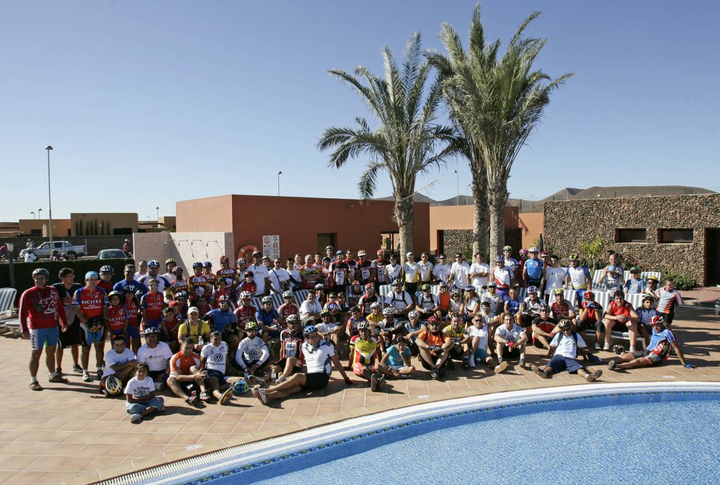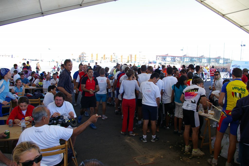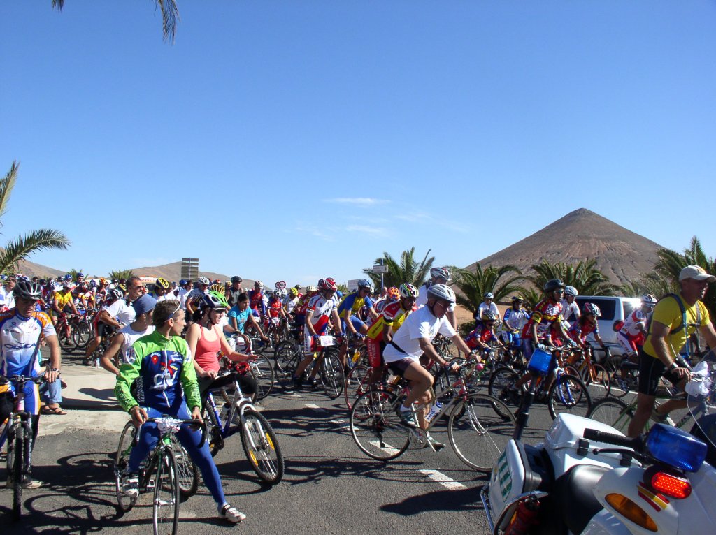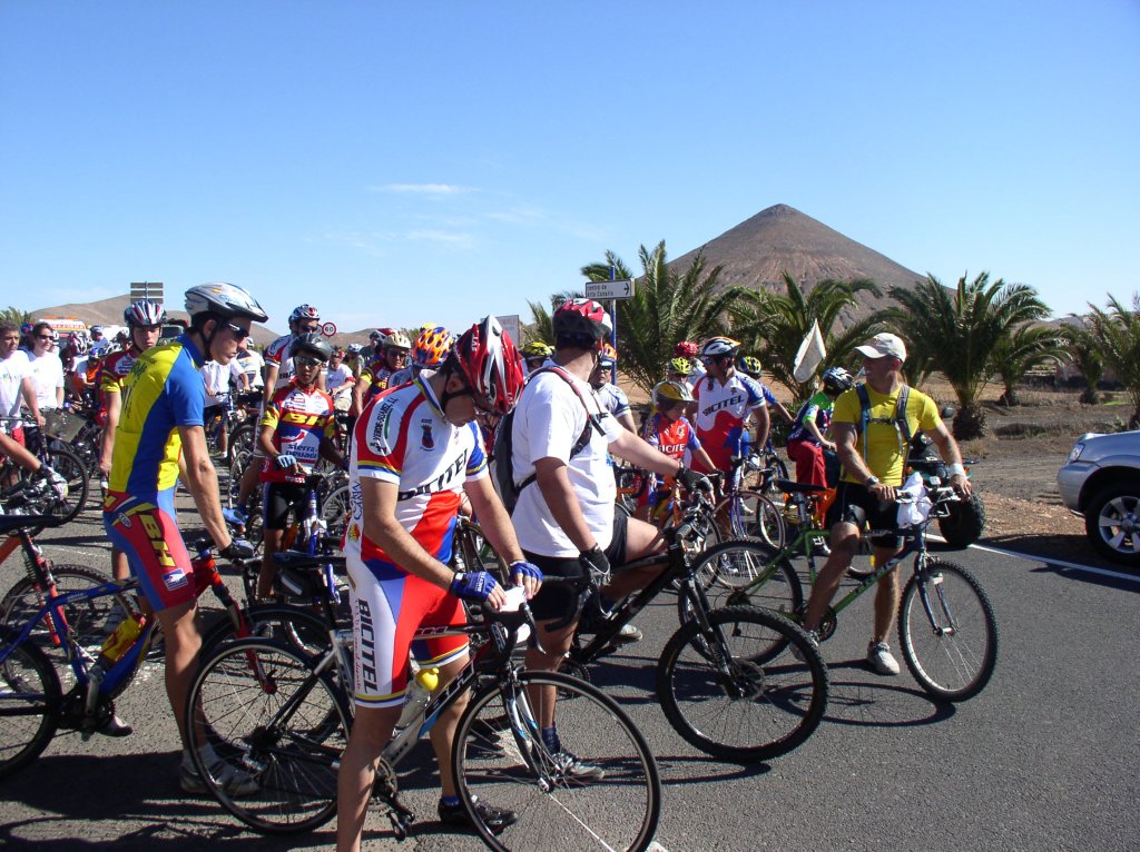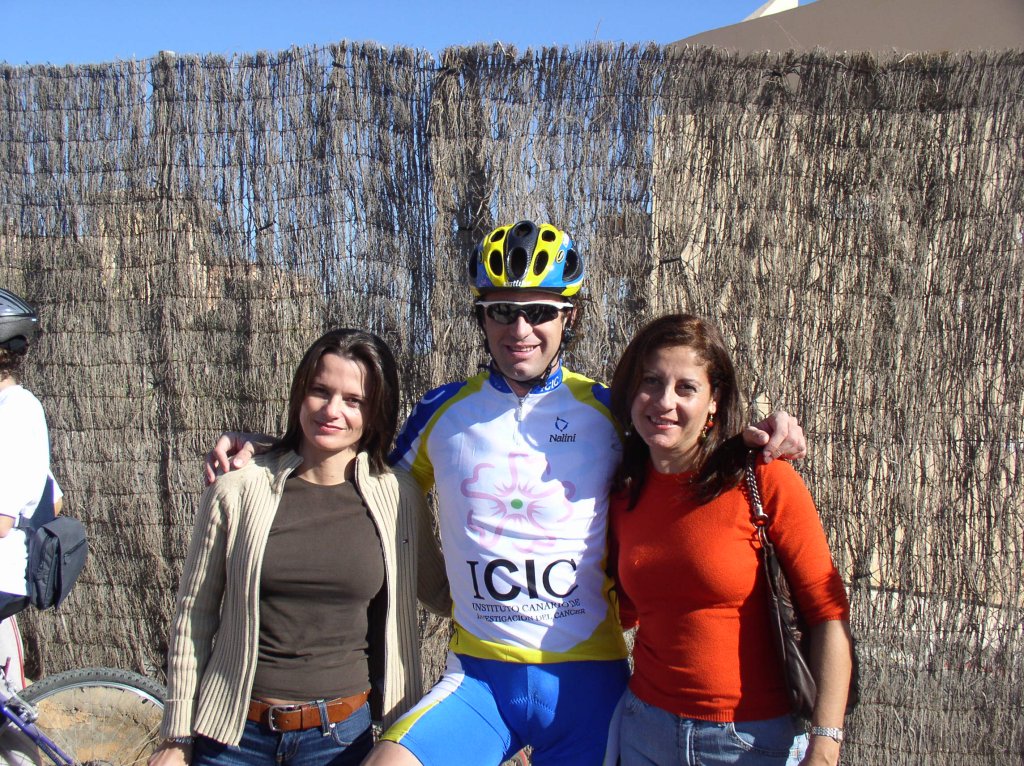 5. II Marcha Cicloturista Dunas de Corralejo "Kilómetros contra el cáncer"Equipo del ICIC participante en la II Marcha Cicloturista Dunas de Corralejo Memorial Pilar Cabrera, consitutuido por Miguel de la Nuez, Eduardo Blasco Álvarez, Vicente Belda, Santos González, Sergio Cuesta y Santi Pérez. El objetivo original de las marchas cicloturistas organizadas por el ICIC ha sido concienciar a la población de que el deporte es importante para conservar una buena salud y prevenir la paga de la obesidad, que conduce, entre otras enfermedades, a una mayor predisposición del cáncer. Además, este año hemos vinculado la II Marcha Cicloturista Memorial Pilar Cabrera a la búsqueda de fondos en todos los frentes para la investigación del cáncer en el seno del ICIC. La II Marcha Cicloturista ha tratado de cubrir ese doble objetivo, y se ha propuesto captar fondos de la sociedad mediante el procedimiento de que los ciudadanos y las empresas adquieran "Kilómetros contra el cáncer" y colaboren con sus donativos en un almuerzo benéfico. Salida del Hotel Bahía Real de los 488 particpantes en la II Marcha Cicloturista Dunas de Corralejo. En primer término, Eduardo Blasco-Olaetxea y Claudina Morales, alcaldesa de La Oliva, junto a Vicente Belda, Óscar Sevilla. La II Marcha Cicloturista se celebró el domingo 4 de diciembre, y contó con 488 participantes, lo que constituyó un sonado éxito de participación y proporcionó un excelente efecto de promoción para la lucha contra el cáncer en Fuerteventura y en toda Canarias. La mayoría de los ciclistas fueron de Fuerteventura, pero hubo una nutrida representación de Lanzarote (más de 100 ciclistas) y de Telde (más de 50 ciclistas), que utilizaron la oferta de traslado gratuito a Fuerteventura ofrecida por la Línea Armas. Participaron 23 ciclistas profesionales pertenecientes a los equipos Euskaltel-Euskadi, Kelme-Comunitat Valenciana y Orbea, además de Santos González, Santi Pérez, Francisco Mancebo, Sergio Cuesta, Óscar Sevilla y otros que participaron individualmente. Estos equipos, junto a decenas de aficionados y personas concienciadas en la lucha contra el cáncer, conformaron en Corralejo un espectáculo multicolor difícilmente igualable. Oscar Sevila encabeza el pelotón frente a la isla de Lobos. Equipo de Lanzarote. La carrera constó de tres etapas, con un total de 47 km. La primera etapa transcurrió por terreno llano, entre el Hotel Bahía Real y el cruce de La Caldereta, de 20 km, y fue cubierta por casi todos los participantes. La segunda etapa tuvo lugar entre el citado cruce y a Casa de Los Coroneles, en La Oliva, de 10 km, con un puerto en La Caldereta, que propició algunos abandonos. La tercera etapa transcurrió entre La Oliva y la urbanización Tamaragua, de 17 km, y culminó con la llegada a la avenida principal de Corralejo en un sprint impresionante, con los ciclistas lanzados a toda velocidad por la avenida principal de Corralejo. Equipo del Comunitat Valenciana. Ciclistas de Telde ante la Casa de los Coroneles, en La Oliva Descanso en la Urbanización Tamaragua Tras la carrera hubo una fiesta popular organizada por el Ayuntamiento de La Oliva, con una comida típica. Durante la fiesta se sortearon bicicletas, material deportivo y regalos donados por empresas y particulares de Fuerteventura, verdaderos patrocinadores de la carrera. La fiesta terminó con la entrega de recuerdos a los ciclistas participantes por el Ayuntamiento de la Oliva al más veterano de los ciclistas, de origen italiano que ha participado en las dos ediciones de la Marcha Cicloturista Dunas de Corralejo. Salida de la segunda etapa. Llegada al sprint a Corralejo Distinción al cicloturista más veterano Premio Librería Tagoror a uno de los niños participantes Fiesta popular al final de la marcha La prueba ciclista final estuvo dedicada a los profesionales: un espectacular I Criterium Dunas de Corralejo, celebrado el 5 de diciembre. Los ciclistas profesionales corrieron en un circuito urbano de 1200 metros, al que daban 25 vueltas, con eliminación del último en cada vuelta. Los cinco últimos protagonizaron un potente sprint que hizo las delicias de los miles de personas congregadas en la avenida principal de Corralejo, que disfrutaron con los peculiares comentarios del sin par Vicente Belda. Entrega de premios en el Criterium Dunas de Corralejo: Markel Irizar, Paco Mancebo y Santos González. El Criterium fue ganado por Markel Irizar, ciclista del Euskaltel que ha padecido cáncer de testículo, y que se dejó la piel por la causa de la lucha contra el cáncer. El segundo clasificado fue Francisco Mancebo y el tercero es Santos González, que actualmente no tiene equipo, pero que será el líder del Comunidad Murciana, actualmente en constitución. Santos González, Vicente Belda, Sergio Cuesta, Santi Pérez, Miguel de la Nuez y otros ciclistas vistieron el maillot del ICIC, un regalo del equipo Comunitat Valenciana. La prueba fue de carácter oficial, presidida por el presidente de la Federación Ciclista de Las Palmas, que participó como ciclista en la II Marcha Cicloturista, y contó con jueces de la misma Federación. Comida benéfica y parranda contra el cáncer En Corralejo tuvo lugar también un almuerzo benéfico, en las magníficas instalaciones del Club Baku de Corralejo, al que asistieron 300 personas que contribuyeron con su donativo de 50 euros a la causa de la investigación del cáncer en Canarias. La comida, que incluyó platos típicos majoreros, como una excelente carne de cabra, estuvo amenizada por un soberbio grupo de folcloristas venidos de todas las islas, como los majoreros, como Domingo "El Colorao", Carlos Cabrera, Marcos Hormiga, Domingo Umpiérrez y Pancho González, miembros de la Parranda del Tío Paco, de Gran Canaria, que cuenta entre sus miembros con Feluco Tejera Alexis Santana, Goretti Benítez, Andrés García, Yeray Rodríguez, Mariví Cabo, Abelardo "El Tormento", Manolo Estupiñán y Moneiba G
