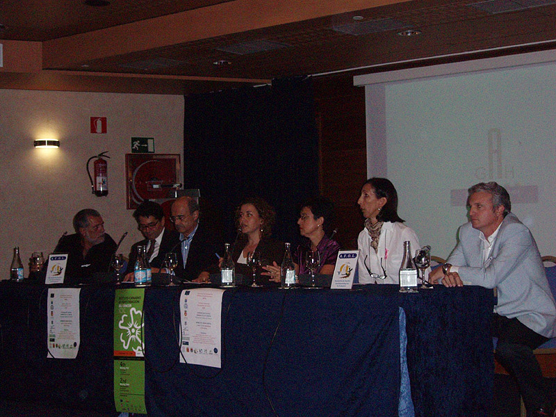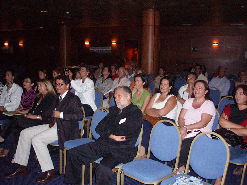 3. Acto de Canarias Contra el Cáncer organizado por AFOL – ICICTal como ocurrió en los encuentros YCIC celebrados en años anteriores en La Palma (2004), la Gomera (2005) y Tenerife (2006), el Meeting IV YCIC – II YBIM tuvo una prolongación social, con la celebración del III Acto Canarias Contra el Cáncer en Lanzarote. Este acto, dirigido a todas las personas interesadas en conocer mejor el cáncer, fue organizado por AFOL (Asociación de Familiares de Pacientes Oncohematológicos de Lanzarote), en colaboración con el ICIC, y contó con 125 participantes. Foto 61.12 Inauguración del Acto Canarias Contra el Cáncer organizado por AFOL e ICIC en Lanzarote Las conferencias estuvieron a cargo de Javier Dorta (Presidente de la Fundación ICIC), Sergio Moreno, Santiago Domínguez (Hospital de la Candelaria) y Orlando Falcón (Director del Instituto Ginecológico Orlando Falcón, y vicepresidente de la Fundación ICIC). Fotos 61.13 y 61.14 Asistentes al acto de Canarias Contra el Cáncer en Lanzarote La inauguración contó con la presencia representantes del Cabildo de Lanzarote y del Ayuntamiento de Arrecife, que quisieron con su presencia resaltar la importancia social del acto. La Presidenta de AFOL aprovechó la ocasión para reivindicar una mejor asistencia oncológica para Lanzarote, incluyendo la creación de una Unidad de Radioterapia que de servicio a Lanzarote y Fuerteventura. La conferencia de Javier Dorta (Presidente de la Fundación ICIC) trató de la prevención primaria y secundaria del cáncer colorrectal, el más abundante en el conjunto de la especie humana (aunque en hombres en más frecuente el de próstata y en mujeres el de mama). Resaltó la importancia de acudir a hacerse una colonoscopia siempre que haya dolores prologados injustificados en el abdomen, o sangrado anal no debido a hemorroides. Foto 61.15 Javier Dorta y Orlando Falcón, Presidente y Vicepresidente de la Fundación ICIC y ponentes en el Acto de Canarias Contra el Cáncer en Lanzarote. Por su parte Sergio Moreno hizo un enorme esfuerzo por comunicar a todos los presentes las bases celulares y moleculares del cáncer, y de los controles de que disponen las células para mantener la integridad del genoma y no convertirse en células tumorales. Santiago Domínguez trató de la importancia de la obesidad como factor de riesgo para el cáncer y para otras enfermedades. Abogó por llevar a la conciencia de toda la población la necesidad de realizar una dieta equilibrada y baja en calorías de origen lipídico, como una de las claves para disminuir la incidencia de cáncer. Cerró el ciclo de conferencias Orlando Falcón, quién ofreció una panorámica del estado actual del cáncer de cuello uterino en Canarias. Destacó como éste cáncer tiene una causa conocida: la infección por el virus del papiloma humano (HPV), siendo el cáncer una consecuencia poco frecuente de una infección muy frecuente. En su experiencia la realización de controles citológicos del cuello uterino ha permitido disminuir drásticamente el número de cánceres en estado avanzado en Canarias. La parte final de su charla se centró en la disponibilidad desde hace dos semanas de vacunas muy eficientes para evitar la infección por HPV. Al final de las conferencias se abrió un animado coloquio en el que intervinieron los conferenciantes, Carmen Arrocha, presidenta de AFOL y Marisa Herrera, presidente de la Asociación canaria de Cáncer de Mama (ACCM), y en que hubo un animado intercambio de opiniones sobre los contenidos del acto.