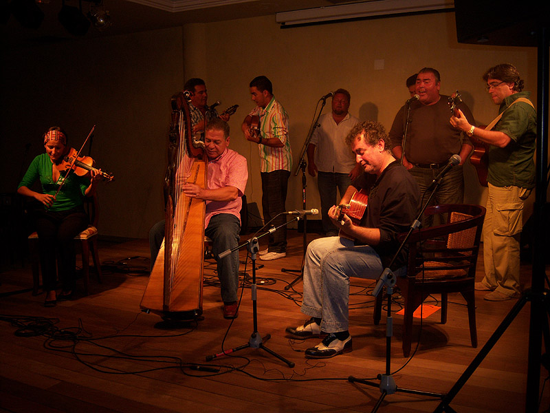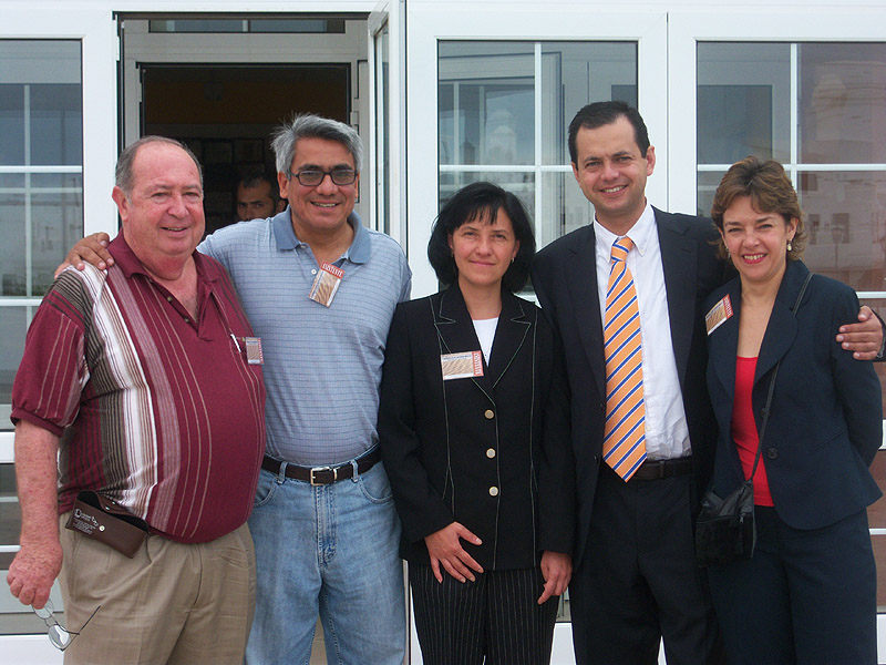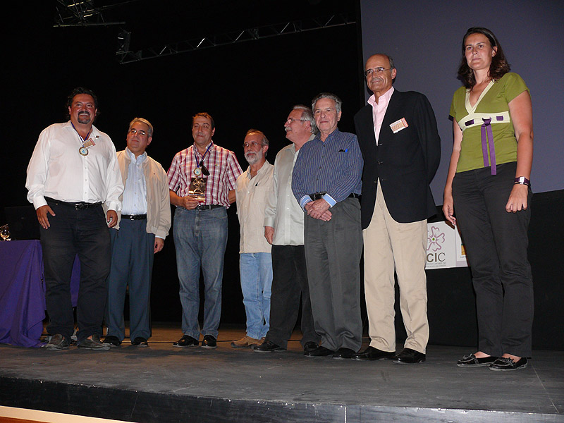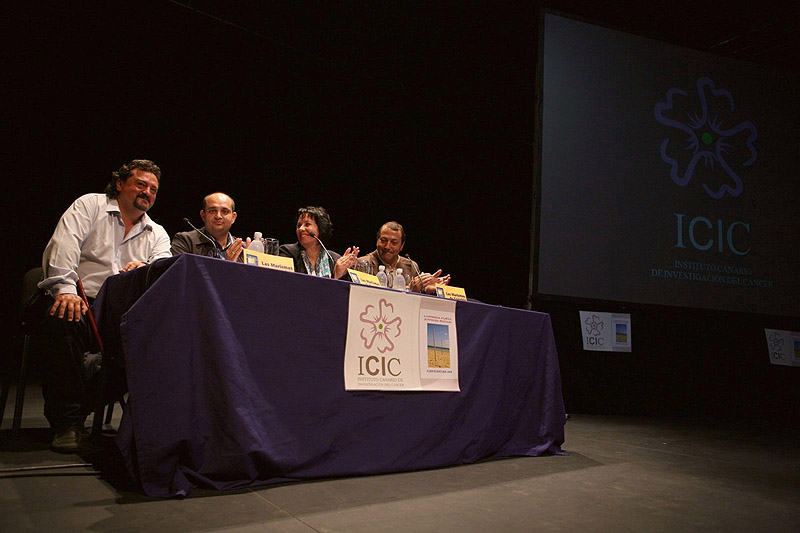 La IV Conferencia Atlántica de Patología Molecular volvió a reunir este año a un grupo de 53 patólogos de EE.UU., Méjico, Venezuela y España, con una nutrida representación canaria entre los participantes. El programa final de la Conferencia (Anexo nº 2), nos trajo este año a interesante jóvenes valores, como la canario-venezolana Marisa Martel, los mejicanos Álvaro Ávila y Minerva Lazos, los venzolanos Jorge García-Tamayo y Enrique González, y los españoles Marta Cañamero y Enrique de Ávila, entre otros brillantes ponentes. Foto 64.4 Patólogos canarios con José Palacios y Aldo Reigosa (últimos por la izqda.) Foto 64.5 Grupo de patólogos mejicanos con Mario A. Luna (Primero por la derecha) El marco elegido en esta ocasión fue el flamante Auditorio de Corralejo, que proporcionó unas condiciones excepcionales para la celebración de Congresos de hasta 500 personas en su sala principal, y que cuenta con una superfice de unos 800 m2 para las sesiones de pósteres, exhibiciones comerciales, etc. Como en 2007, el alojamiento de los ponentes tuvo lugar en el Hotel Las Marismas, cuyo personal y dirección se volcaron en la atención de los participantes. Foto 64.6 Condecoración a Eduardo Blasco, Javier Dorta y Nicolás Díaz Chico por la Sociedad venezolana de Anatomía Patológica. Durante la IV CAPM, la Sociedad Venezolana de Anatomía Patológica, representada por cuatro de sus presidentes, Enrique González (canario-venezolano), Aldo Reigosa, Jorge García Tamayo y Enrique López Loyo (Presidente actual) reconoció la labor de acercamiento que está realizando el ICIC con el mundo de la Patología Latinoamericana, y condecoraron a Eduardo Blasco-Olaetxea, Javier Dorta y Nicolás Díaz Chico con la medalla de la sociedad. Nicolás Díaz Chico recibió también el Premio Atlántico de Investigación del Cáncer en su edición de 2008 por su trayectoria en la investigación del cáncer. Foto 64.7 Actuación folklórica dirigida por Arturo Paneta (arpa) y Carlos Cabrera (guitarra izq.) Como cada año, la parte de intercambio cultural estuvo también muy cuidada, y contamos con la colaboración de folkloristas locales y americanos que hicieron las delicias de los visitantes de la otra orilla. Las actividades científicas se prologaron durante muchas horas, al cabo de las cuales siempre estuvo el premio cultural que tanto une a los participantes. |