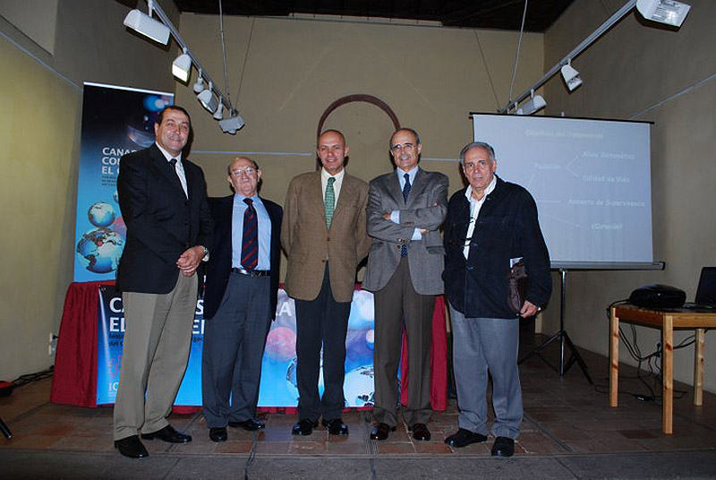 Foto 67.17 Canarias contra el Cáncer La Laguna. Acto Inaugural, con Antonio Cabrera, secretario del ICIC (i), Blanca Pérez, Concejal de Asuntos Sociales del Ayto. de La Laguna, Nicolás Díaz Chico (Director del ICIC) y el Concejal de Sanidad del Ayto. La Laguna. Como ha sido tradicional en las YCIC, este año se incluyó un acto de divulgación del proyecto Canarias Contra el Cáncer, que tuvo lugar la tarde del miércoles 12 de noviembre, en la Ermita de San Miguel, en La Laguna. La inauguración del Acto fue presidida por la teniente de alcalde del Ayuntamiento de La Laguna, Blanca Pérez, el concejal de sanidad de La Laguna, y el secretario del ICIC Antonio Cabrera. Todos elogiaron la importante actividad divulgativa ICIC y la necesidad de llevar esperanza y conocimiento a la población canaria. Foto 67.18 Asistentes al acto de Canarias contra el Cáncer La Laguna. Intervino en primer lugar Nicolás Díaz Chico, con una introducción sobre la incidencia y mortalidad por diferentes tipos de cáncer en Canarias. Hizo hincapié en la coincidencia de que se den los máximos niveles de obesidad entre la población femenina, a la vez que de diabetes, enfermedades cardiovasculares y cáncer. Explicó la estructura del ICIC y su evolución desde su fundación hasta la actualidad. Foto 67.19 Ponentes del acto Canarias Contra el Cáncer en la Laguna, Nicolás Díaz Chico (i), Felipe Martín Casañas Antonio Cabrera, Javier Dorta y Ángel G, Ravel Felipe Martín Casañas, Jefe del Servicio de Ginecología del Hospital universitario de la Candelaria intervino con el tema “Prevención y tratamiento del cáncer de cuello uterino. Explicó a la concurrencia las características del epitelio cervical, y por qué es más susceptible que la vagina para la implantación del HPV. Destacó las características y estirpes carcinogénicas del HPV, y una detallada descripción de proceso desde la infección (que se resuelve espontáneamente en la mayoría de los casos) hasta la malignización del tejido y los estadios de la enfermedad. Detalló, finalmente las posibilidades terapéuticas existentes, haciendo hincapié en la necesidad de acudir al ginecólogo una vez al año, y también el calendario de vacunaciones para evitar la infección y la conveniencia de su introducción en la población canaria. Cerró el acto la intervención de Javier Dorta, con el tema de prevención y tratamiento del cáncer de mama. Comenzó con la descripción de las características anatómicas e histológicas de la mama, de las estirpes celulares que dan origen a los cánceres lobulares y ductales, y de las potenciales causas de la carcinogénesis mamaria. Abordó a continuación las alternativas terapéuticas existentes, incluyendo los diferentes tipos de cirugía, la incorporación del estudio del ganglio centinela, y la radioterapia. Terminó su disertación con la explicación de los tratamientos de hormonoterapia, quimioterapia y nuevas terapias basadas en la caracterización molecular de los tumores. Las intervenciones fueron seguidas por más de 70 personas que escucharon atentamente las explicaciones de los ponentes y tuvieron ocasión de departir con ellos preguntado sobre muy diferentes aspectos de los tres tipos de cáncer expuestos en el acto de Canarias Contra el Cáncer. |