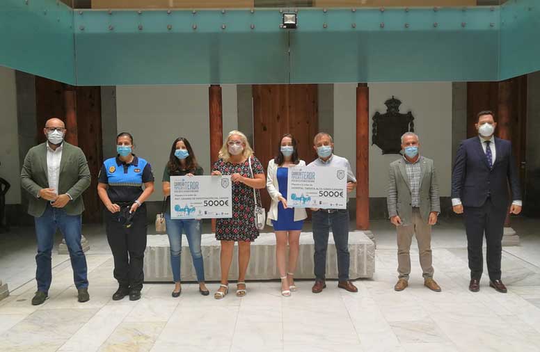 Josué Íñiguez, concejal de Seguridad del Ayuntamiento de Las Palmas de Gran Canaria, Aridany Romero edil de Deportes, y Gonzalo Rosario Ramos alcalde de Teror, han hecho entrega de lo recaudado en la XXI edición de la Carrera Popular a Teror de la Policía Local de la Las Palmas de Gran Canaria. Dicha recaudación 10.000 euros y que ha sido repartido a partes iguales entre dos proyectos humanitarios. Desde el ICIC agradecemos muchísimo esta donación a la organización de la Carrera Popular a Teror de la Policía Local de la Las Palmas de Gran Canaria.